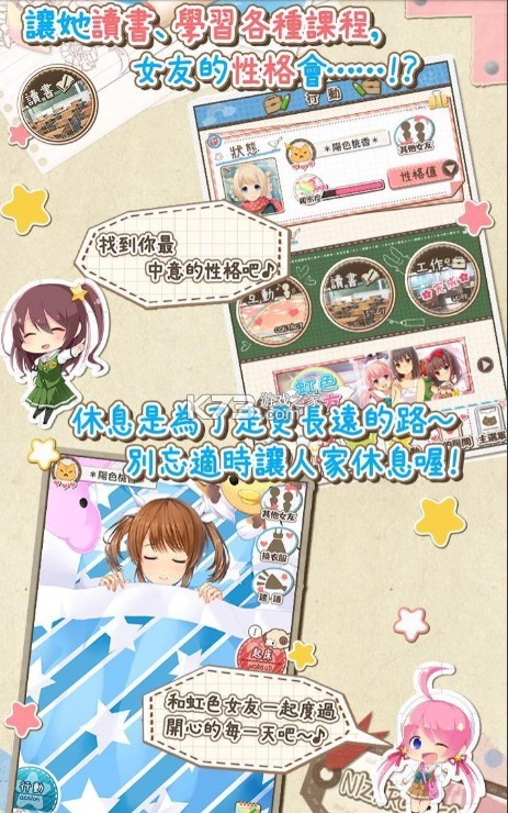 《虹色女友台服》ios版是一款主要以文字恋爱展开的游戏,游戏本身采用日漫风格展开,整体画面制作精美,场景刻画和游戏内容也十分不错,喜欢这类游戏的玩家一定不要错过哦。