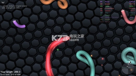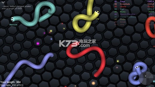 蛇蛇大作战官方正版(slither.io)是一款简洁画风的休闲类游戏,采用了蜂窝式的地图背景令玩家的移动方向更加明确,让盘旋成圈等高难度动作成为可能,游戏中可以通过吞吃能量获得更长的躯体,但是变长之后也会面临难以操作的问题。