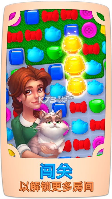 闯过色彩缤纷的三消关卡以整修和装饰豪宅内的房间、在闯关过程中解锁刺激家族故事的更多篇章!你还在等什么?别客气!