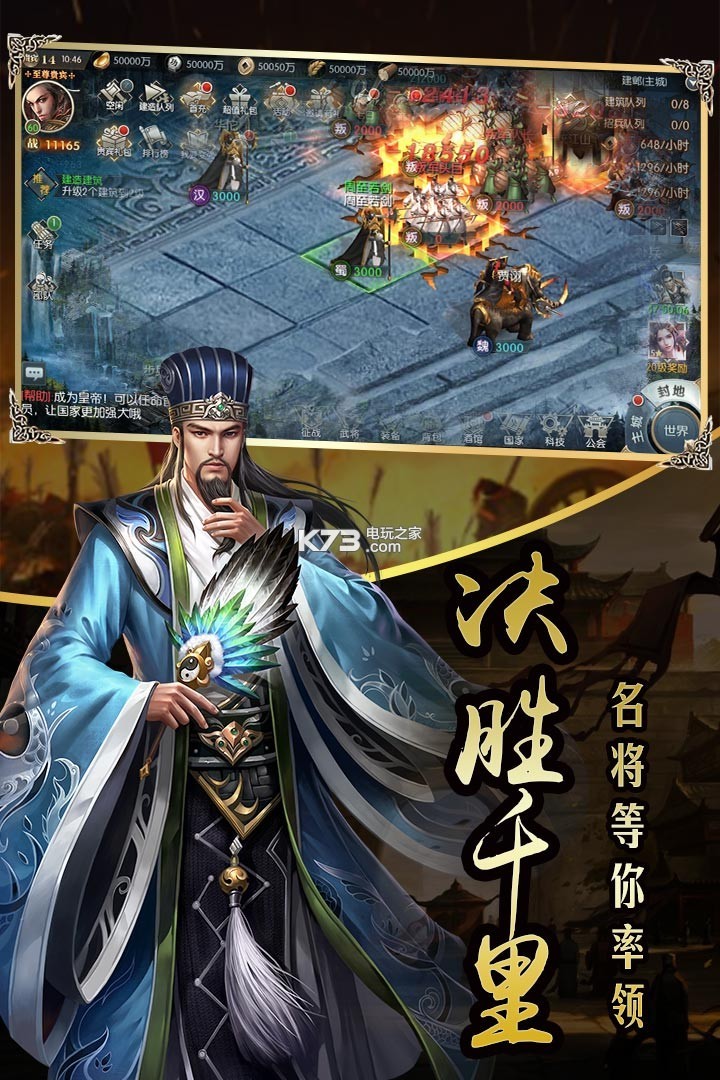 国战来了是一款以三国志为题材的策略手游!游戏首创“纯国战”模式。传奇经典般的玩法让你耳目一新。3D逼真唯美人物,炫酷的技能,超强打击感。国战来了手游下载中游戏将以全民国战、死战灭国作为核心玩法。游戏中的每一个玩家将会变身为百战千军的统帅,参与到极致真实的国战当中。