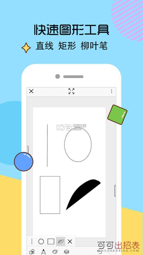 2、专业的绘画工具,方针笔,无限的撤销与重做、照片导入后进行编辑,快速绘制直线、柳叶笔等;