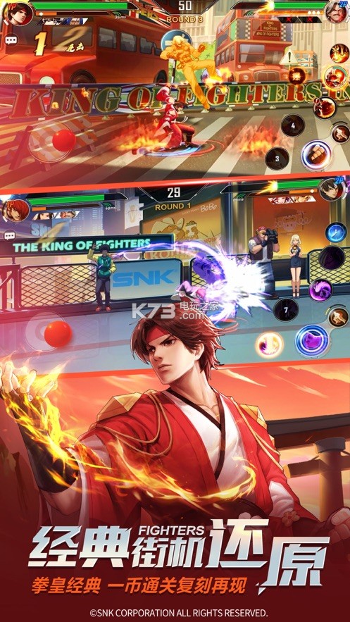 庆祝2周年,特别上线”决战到底“全新赛事玩法。玩家将使用随机和自选的格斗家,组成9人队伍,三局两胜匹配对手进行对战。历代主角将悉数出场,角逐拳皇荣耀,谁主沉浮最终胜出?让我们拭目以待!