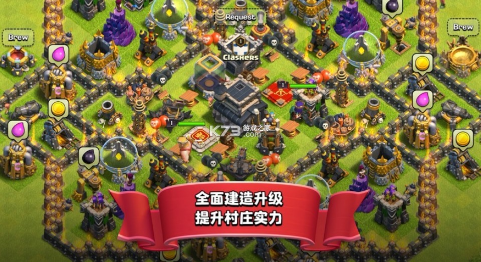 一款经典的策略类手游,这款游戏非常考验玩家的策略能力。部落冲突以策略战争为主题,通过经营自己的村庄,玩家可逐渐强大兵力,进而成千上万的玩家进行战斗。村庄到达一定等级后,还可与其他村庄结成部落,进行部落间的战斗。在部落冲突手游里你不仅能够组建自己的军队,带领部落获胜,还可以将怒气冲天的美髯野蛮人和纵火成痴的法师等队员待您招入麾下!建立村庄,赶走侵略者,对战全球数百万玩家。与他人一同建立强大部落,将敌军杀个片甲不留!在《部落冲突》里您还可以与全球玩家一较高下,夺取他们的奖杯,感受同场竞技的魅力。以真实社交为基准,让玩家体验跟现实中交友般趣味,加入了大量生活中的技能,即时的和线上好友互动!