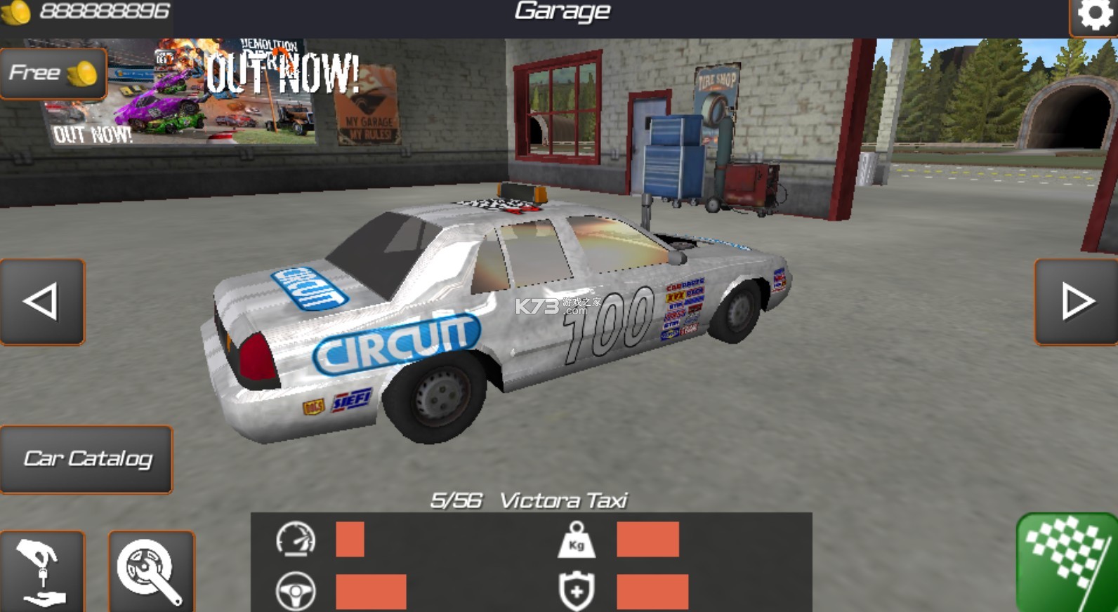 很适合发泄的游戏,刚进去的时候是小破车,随着比赛获得的金币,玩家可以购买各种赛车,买车之前,玩家还能试驾,驾驶汽车到公路上尽情的撞击破坏吧,反正又不花钱!