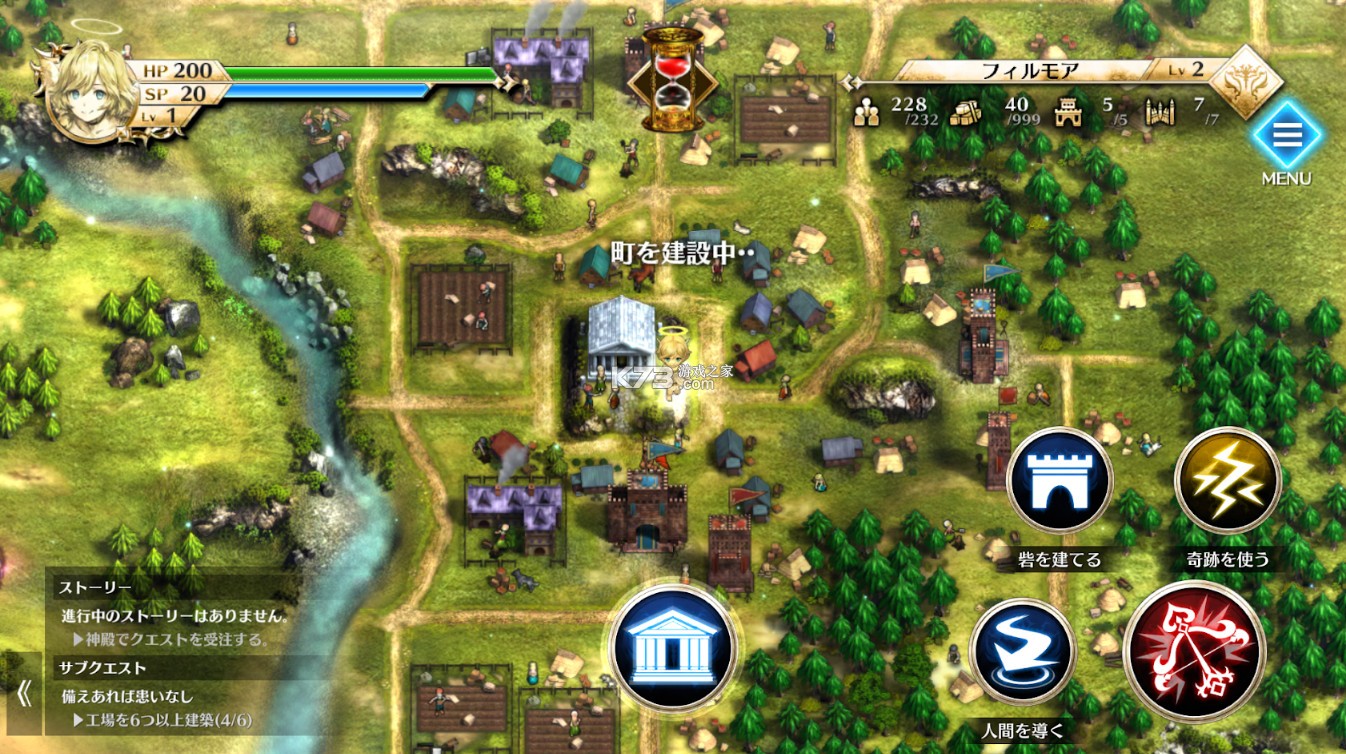 要利用闪电、地震等“奇迹”,清除沼泽、岩体等阻碍城市发展的障碍。此外,还会出现破坏城市和减少人口的怪物,因此操作神仆天使并用弓箭击退敌人很重要。