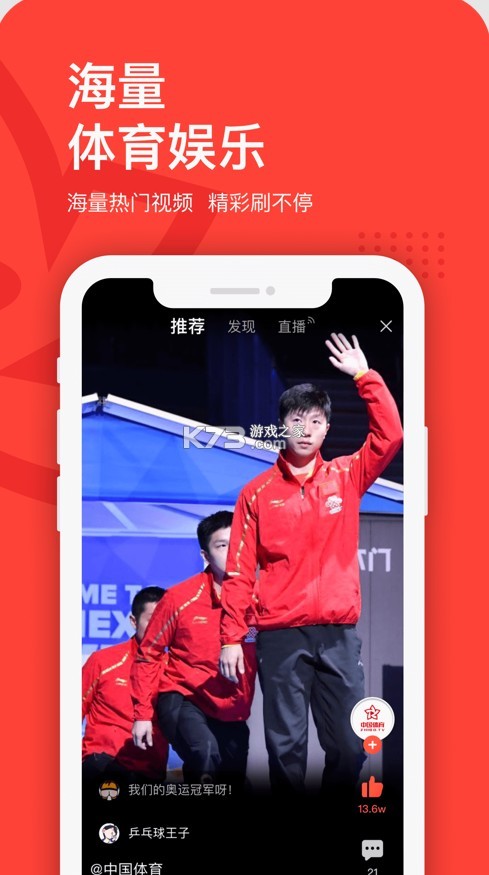 中国体育是一款专门为体育爱好者打造的赛事直播软件。不管是乒乓球,羽毛球,CBA还是排球,我们都会定期聘请大咖来现场直播,随时与你互动!平时他们躲在电视机里高高在上,我们给你一个机会来恶搞他们!看着高颜值的体育明星在直播间里依然迷人吗?中国体育直播tvapp的主播都是各类赛事的专业人员,不仅有一流的冠亚军得主,还有专业赛事教练,丰富经验的裁判和助教,还有来自民间的英雄人物,让你从不同的身份、背景、专业和民间的角度,来欣赏和获得完全不同风格的比赛分析和解说。感兴趣的小伙伴快来下载吧!