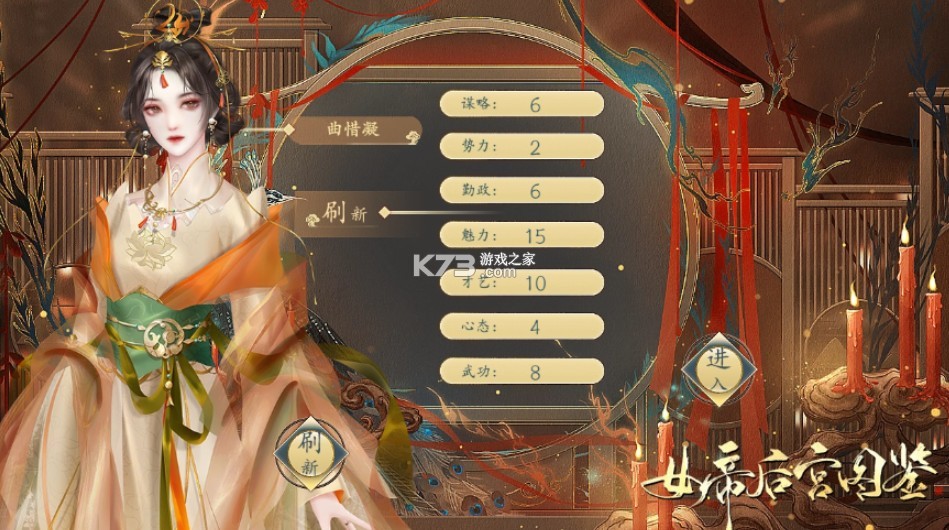 丰富宫廷恋爱剧情的rpg游戏,进入后宫,与各位美女宫女相处,并通过各种方式获得资源,提升自己的实力。 在游戏里面,在游戏里玩家需要收集不同的卡牌,包括美女、服饰、珍宝等,来提升自己在后宫的地位,在游戏里玩家还需要对美女宫女进行关怀和互动,提升自己的亲密度。