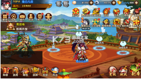 8、组建你的队伍,三位武将并肩作战,不同的属性之间触发羁绊效果,增强伤害;