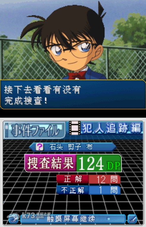 本作是NBGI根据日本知名动漫作品《名侦探柯南》改编而来的一款侦探类解谜游戏,游戏中玩家需要利用nds的下屏以及自己的逻辑思维能力进行谜题的侦破,最终像动漫里那样指出事实的真相。