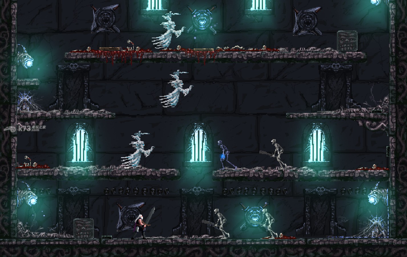 本作除了可以给你带来玩《恶魔城》久违的亲切感,还可以体验满了血腥元素,血肉横飞的场景,通过这款复古的砍杀风格的动作游戏,玩家可以重新体验那肆无忌惮疯狂砍杀的各种怪物的刺激感与爽快感。在这个哥特世界,玩家控制的一个名为Bathoryn的英雄,寻找到传说七塔。不断探索杀怪并解开各种陷阱和谜题,挑战每个阶段的强力boss。