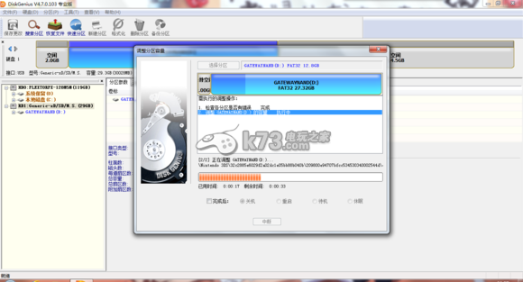 首先打开diskgenius(打开之前先拆入卡,读卡器或者本子自带的读卡器也好、先插上再开这个软件、要不软件会出现已停止提示,win8亲测)尽量不要用win8来用这个软件、我平板用这个就没问题、本子最后调整分区就报错、最后不得已换了个win7搞定的最后一步