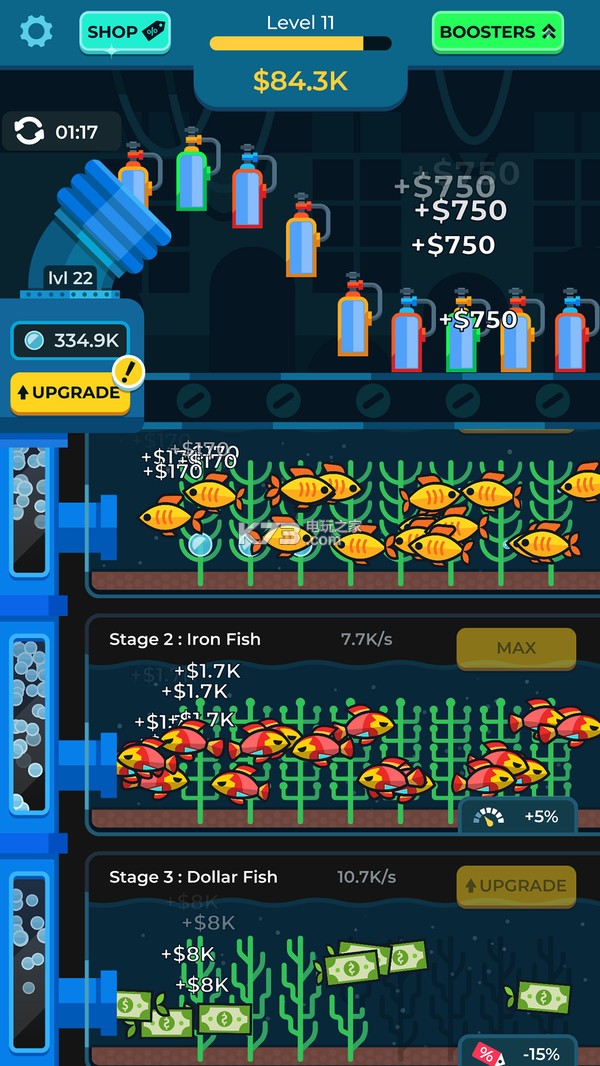 升级您的工厂、投资更好的设备来加快盈利过程,并成为下一个鱼类大亨吧!