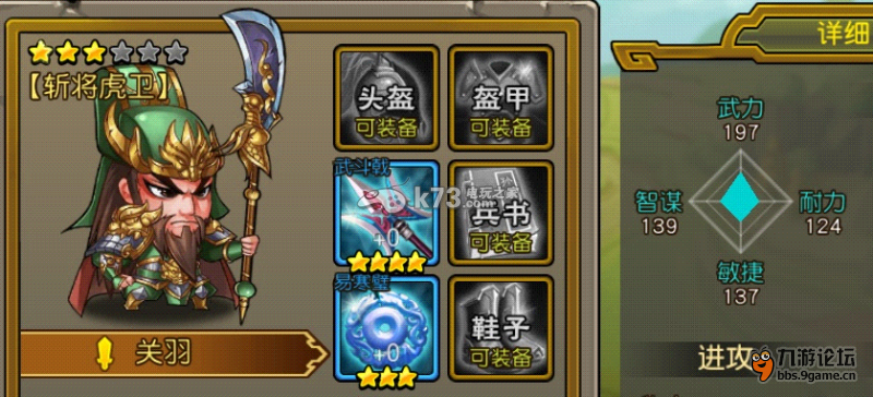关羽大大的物攻加成也是不错的,平a伤害也比较高的说,唯一不足就是技能太坑爹。虽然是有物理加成,也比较高,但是释放的伤害实在跟不上大部队。(也许是被吕布的极限强化麻木了) 客服也在跟进重做关羽。喜欢的练起也可以,可以用来补刀。