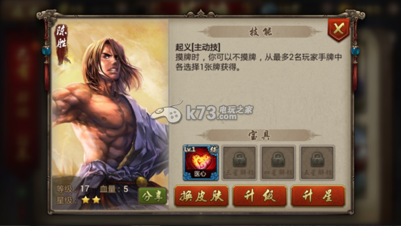 个人感觉由于没有醉酒和强化。这英雄真是食之无味弃之可惜。通常我本人操作圆圆副将选择项羽。大家也看到了我带的是蓝色杀贪和穿杨。有给我惊喜的时候。摸到老虎杀基本必中。杀人掉血杀贪发动继续摸牌曾经一回合在我辅助下秒掉两人。但是更多的时候就是在那要死不活的每回合造成一点伤害。。由于没有防御技能。一旦挨打了很快被下光牌在那耗我桃子。反正没有醉酒和强化的项羽个人感觉还不如教头好用。