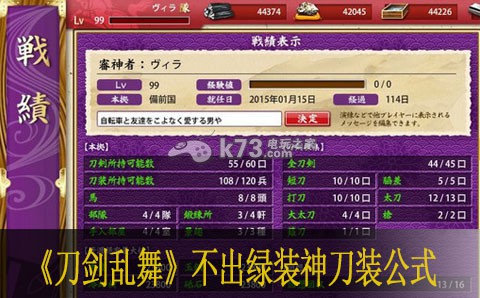 刀剑乱舞不出绿装神刀装公式