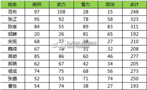 三国志13武将四维能力属性总结