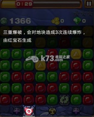 传统的宝石消除游戏,玩家要做的是选择的是最多相同颜色的宝石堆,而新宝藏猎人2则不是这样哦!玩家要选择的是最接近地面的宝石堆,只有这样才能每次操作都能向下开辟一段距离。