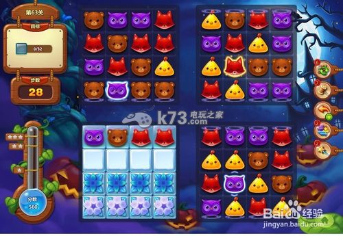 同样,右上的横4特殊动物,我们不要让它在右上激发,让它流动到右下再激发更有助于消除冰块。