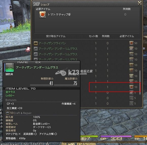 好了,之后我们制作10个2星秘传HQ料理,你会觉得制作难度瞬间和以前做的比都没法比,全HQ材料开工,技术好的话也只有七八成的HQ率,还得靠人品。制作一次的成本大约需要3500左右,如图,注意红框数据,做出10个HQ后,我们就可以换70眼镜了。