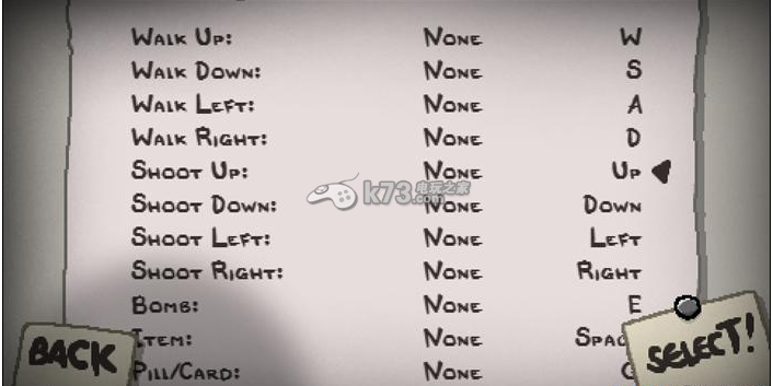 可以看到游戏按键一点儿都不复杂,在游戏的过程中,真正有用的也就是移动键和方向键,再加上个别道具使用按键。按键不复杂,并不意味游戏简单,如果你玩过弹幕类的游戏,那么以撒的结合自然不在话下。如果是新手,那一定会被惨虐。