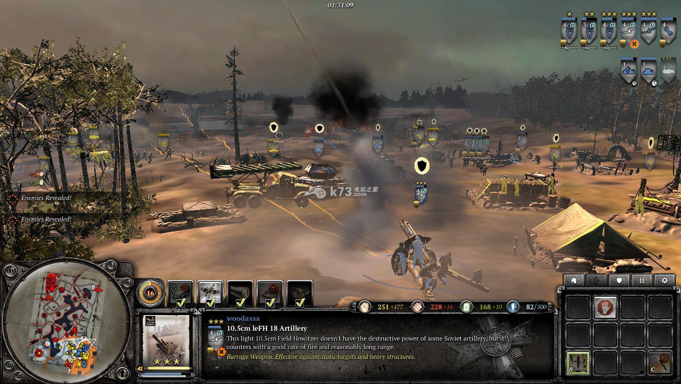 工程兵军官,从买了正版到现在军官还没有解锁完,但同样的,虎式也无法抗住飞机和象式的一起轰炸,虽然人口多,但是油料基本上没了,迫击炮车也要25油料,喀秋莎一轰就没了,脆皮。虎式虽然装甲厚,但开火速度有限制,而关于提升虎式的移动速度和开火速率的卡片还没解锁,目前解锁的都是迫击炮装填时间和perk43装填时间