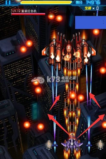 技巧:先定位好战机的位置,看到小子弹来的时候可走斜角路线躲开。