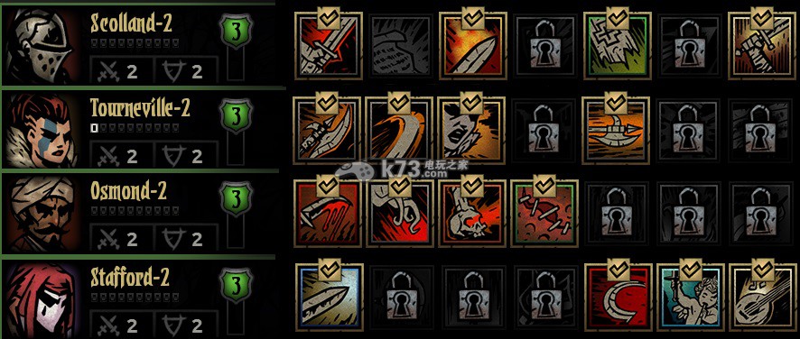 《暗黑地牢》用下面的阵容在第一关中比较顺利,不过遇到boss后感觉还是有点乏力,给大家分享一下通关阵容和思路。