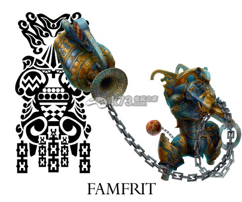 与光之异形者—圣王妃爱梅洛洛阿尔斯相对应的存在:珐姆弗里特,他那令人厌恶的暗云模样已成为将其创造出的众神威胁。于是,在与众神的战争爆发后,他被封印在坚固的铠甲之中。