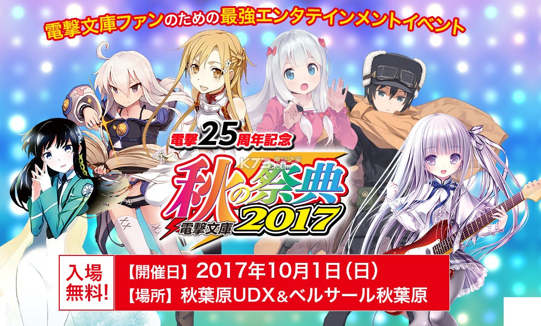 Bandai Namco将在今年2017年10月1日举行的「电击文库秋之祭奠2017」的上公布《刀剑神域》的新作改编游戏,具体为10点30分到11点10分期间的《刀剑神域》舞台上。