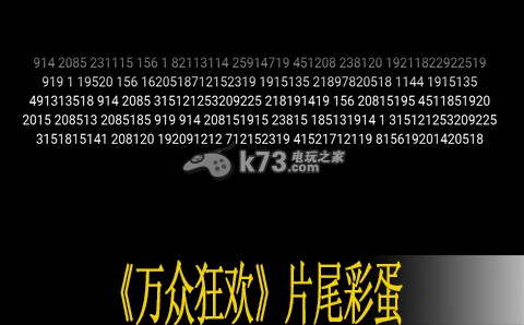 《万众狂欢》通关后出现的片尾字幕最后面有一段神秘数值代码,经过玩家的解谜算是制作组设置的一个彩蛋,具体分析如下。