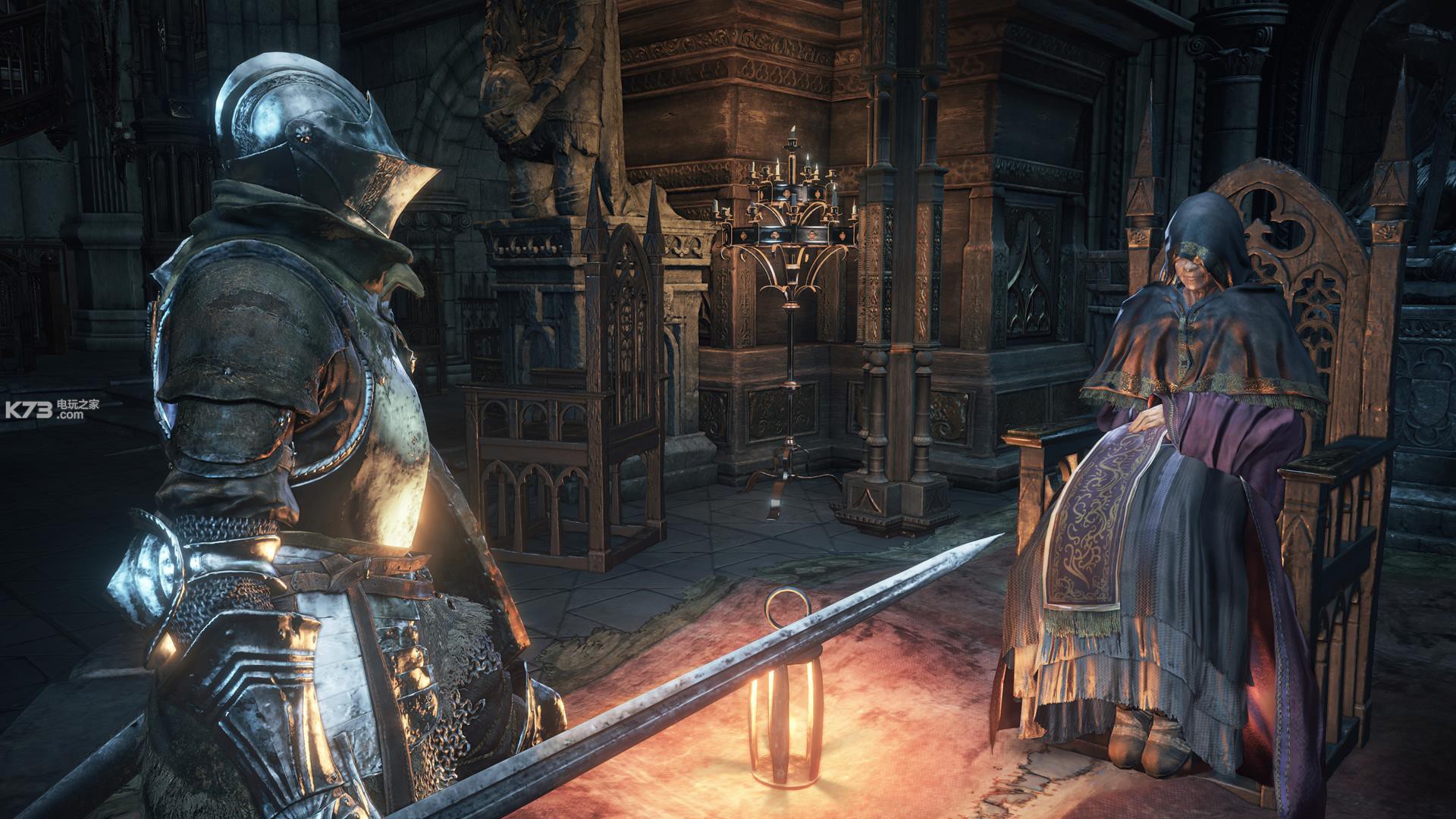 收拾完敌人后从附近的梯子爬下来来到楼座,那里有不少活尸等着你,解决后进入前方的建筑,再次下行并干掉盘踞的敌人,如果之前下来的地方是楼座(阳台)之上,你可以选择直接跳入中央圆形庭院,那里四周都是死尸,出口拱道处还有一个重甲巨斧骑士,它既可以劈砍也会咏唱魔法,一定要小心。
