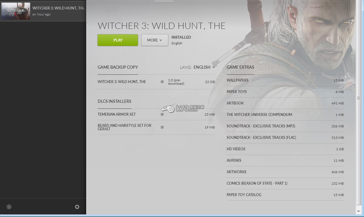 正常启动后...他会显示owned...然后点选此DLC的图示进去...下方应该会出现 AVAILABLE CONTENT..下面有两个DLC选项都选择打勾就会自动下载了...正常安装完后进入GOG的巫师叁资料夹内...会有一个DLC的资料夹裡面又分别有DLC1与DLC2两个资料夹档案...