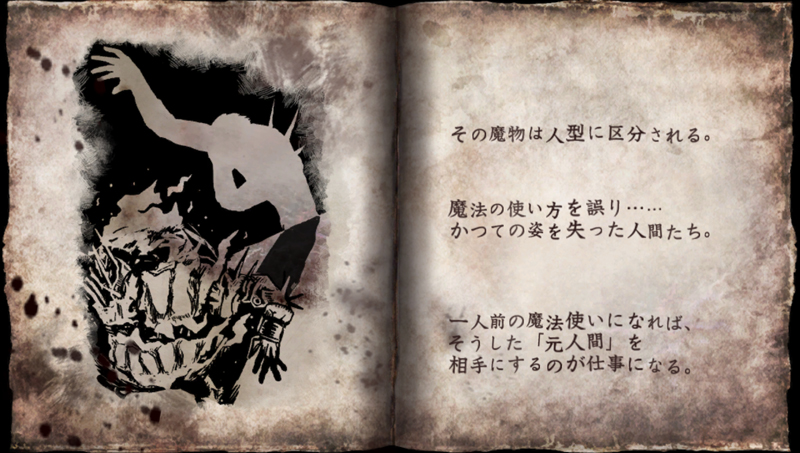 游戏中玩家们将不再化身为一名被选上的勇者,而是扮演一名被残忍的魔法使所抓住,并关在牢房裡等着被拿来当作活祭品献祭的奴隶,而就在玩家们走投无路的时刻,在玩家们面前突然出现一隻有着书本模样的怪物,在书本中记载着过去魔法使与魔物们之间悽烈惨绝的战斗过程,而阅读完书本的主角,也因此而获得使用魔法的能力,并以一名能够运用魔之法则的魔法使身分,在书本的世界展开旅程,并以「牺牲」与「代价」作为魔法之力的来源,藉此解开书本中的各种任务来推进故事的进行与发展。