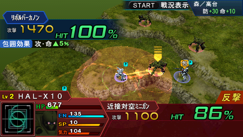 1号机的【ワイヤー捕缚】十分好用,在我方回合的时候,使用这一招攻击敌人时,敌人陷入捕缚状态,敌人的反击无效,并且敌人的命中、回避减少20%,被会心率上升8%,而且其特性还可以无视障碍物的影响。一开始主角比较接近敌人,而且敌人处于高地,推荐主角先站到与敌人同一高地之后在使用ウエーバー·ガン 将其打残(前提还是武器已经升1级),之后派1号机进行打掉,之后都十分简单。