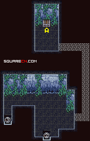 | 墙上有两个机关,开右边的你会一滑到底,掉到Ⅱ。开左边的墙壁会退后,路便可通行。N、O是Dark Matter,都有The Damned看守。P、Q是9000GP(9000ギル)、8000GP(8000ギル),无怪物。 |