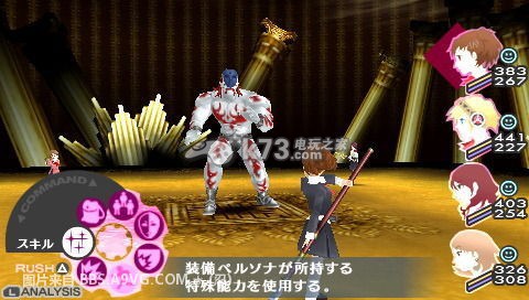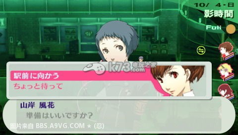 满月直接晚上进去剧情.天田、荒垣不在.不能参加战斗.编队后BOSS战.注意本BOSS有2只.其中一只運命转罗盘的一开始就不能攻击只能消灭另一只.本BOSS战最大难题就是運命这怪.每回合转次罗盘.每次的效果都不同分别有三种1.降低提高攻击防御 2.异常属性 3.伤害或恢复HP大小.个人推荐个转罗盘的方法基本来说对我方很有利的.每次罗盘你按下去后指针一定停在对立方向的位置上.就是说你只要看指针对面是什么效果对着那效果按就可以了.和好掌握.就算中招了也不怕.最高伤害也就200秒不死人的.最怕就是中了全体恐惧不能动.次次给人会心那就麻烦了.消灭另一直后剩下转罗盘按只基本不攻击人的比较好解决.胜利后剧情.