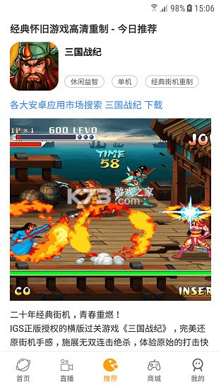 不定时为玩家提供游戏相关视频、高手经典游戏直播,高度还原游戏经典的画面和音乐。