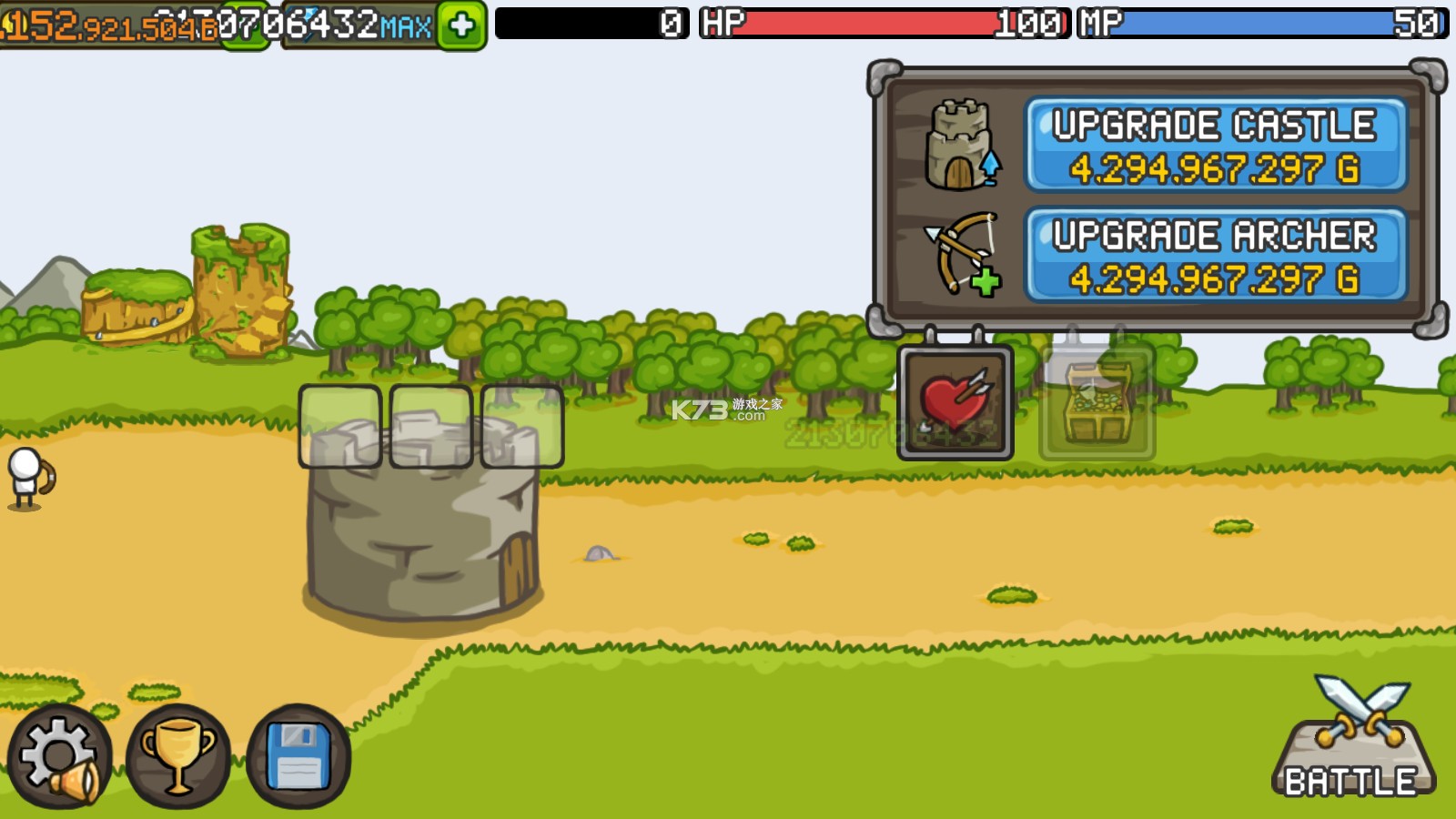 城堡顶端的弓箭手是防守的关键,他们会自动射击接近城堡的敌人。