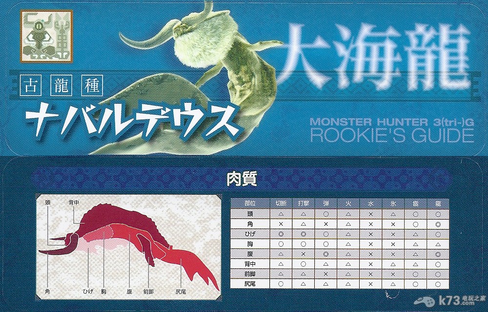 先给大家奉上一张大海龙的肉质表,能够让大家更为清楚的知道它的攻击弱点。