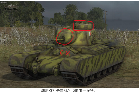 本车底盘角度大不易打,不过后方底盘也有装甲补强,不建议打本车的底盘,如果在本车后方记得打车身上方的引擎就对了! |