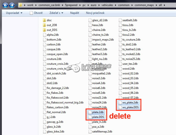 选择work下的\5prepared\pc\euro\vehicules\common\common_maps\all文件夹 删除原来的plate和 ws_plat 复制进去改好的plate ws_plat 以及删除oit_2DB和out_DDS(Texture_Convertere和Texture_Converter所导出的文件夹 因为此时要重新打包BNK 本来不包含这2个文件夹所以要删除 也可以导出的时候选择好另外的保存路径)